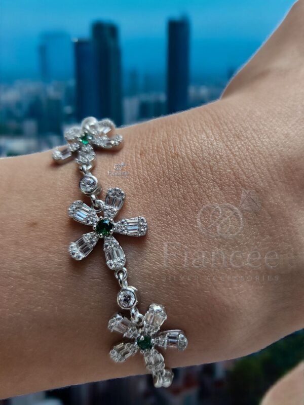 Add a touch of sophistication to your look with this exquisite “Daisy Silver” bracelet, embodying timeless elegance and natural beauty. This stunning bracelet is meticulously crafted with attention to detail and features a captivating, sparkling white cubic zirconia stone.